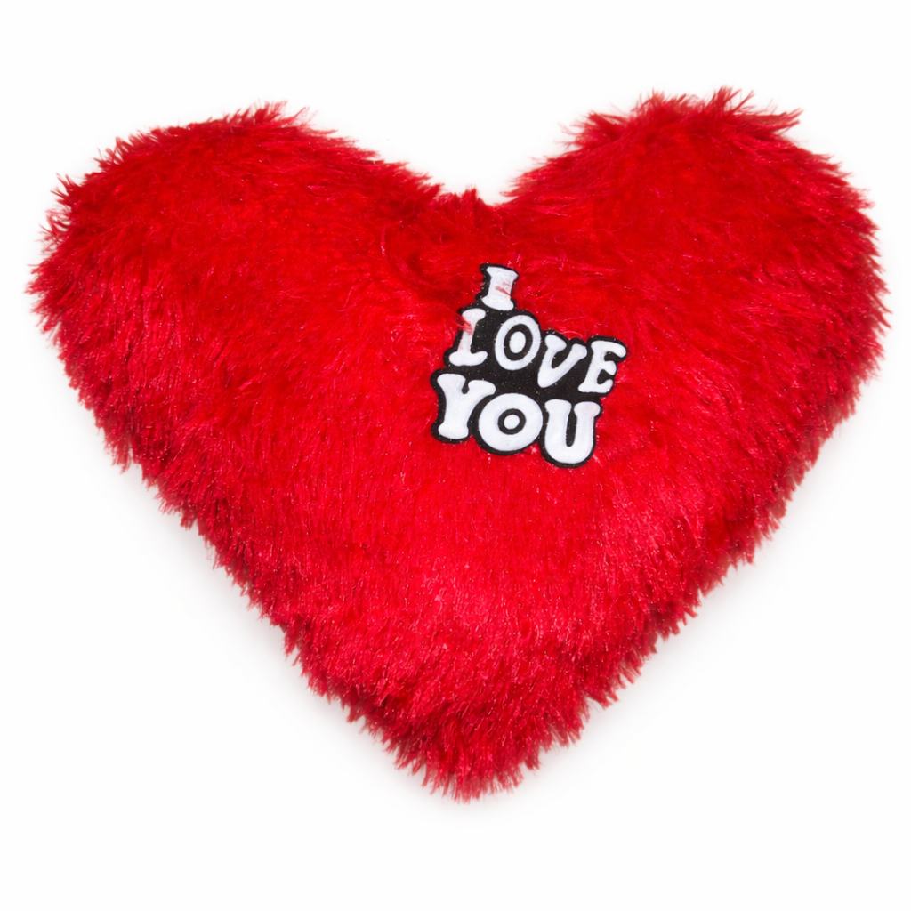 At the center, it features a stylish patch with the message “I Love You” in bold white lettering on a black background, adding a charming and eye-catching detail. The heart shape and soft texture make it ideal for gifting and decoration.
